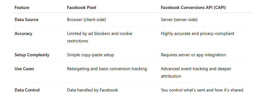 ⚖️ 4. Key Differences: Facebook Pixel vs. Conversions API